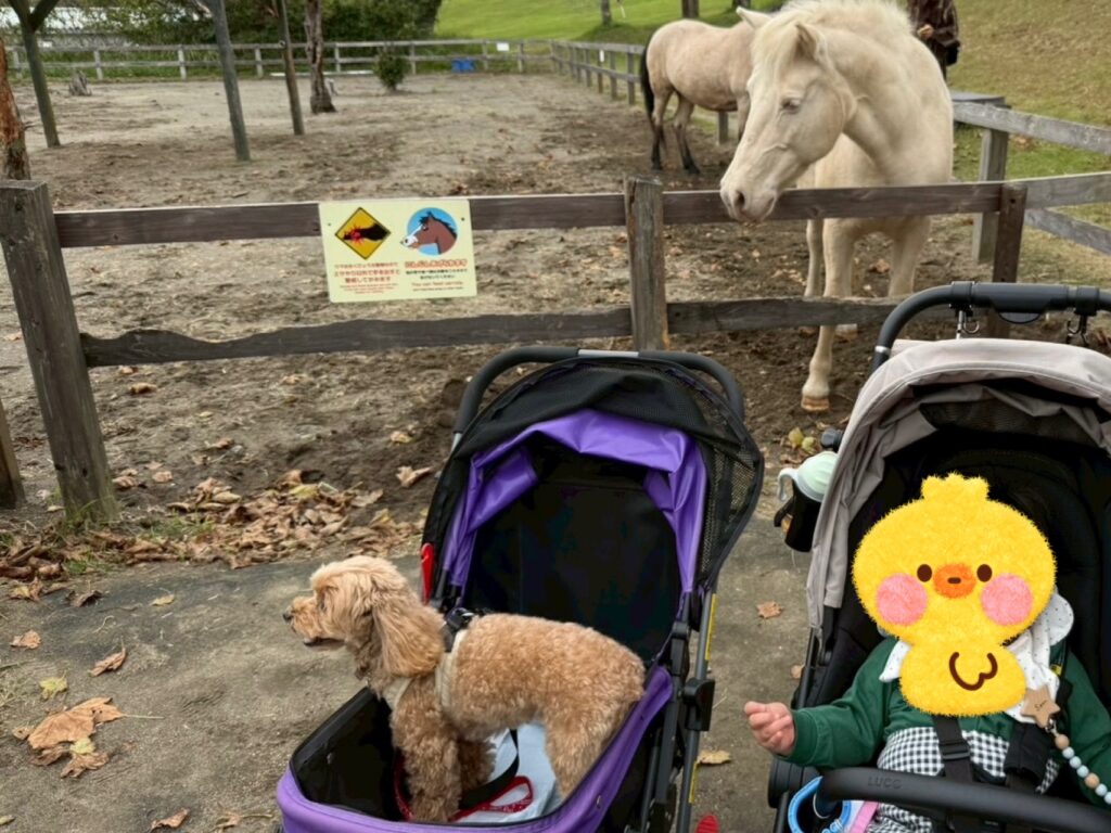 わんちゃんも一緒に「うまの牧場」に入場できますが、愛犬が馬を怖がらせないように注意しましょう。